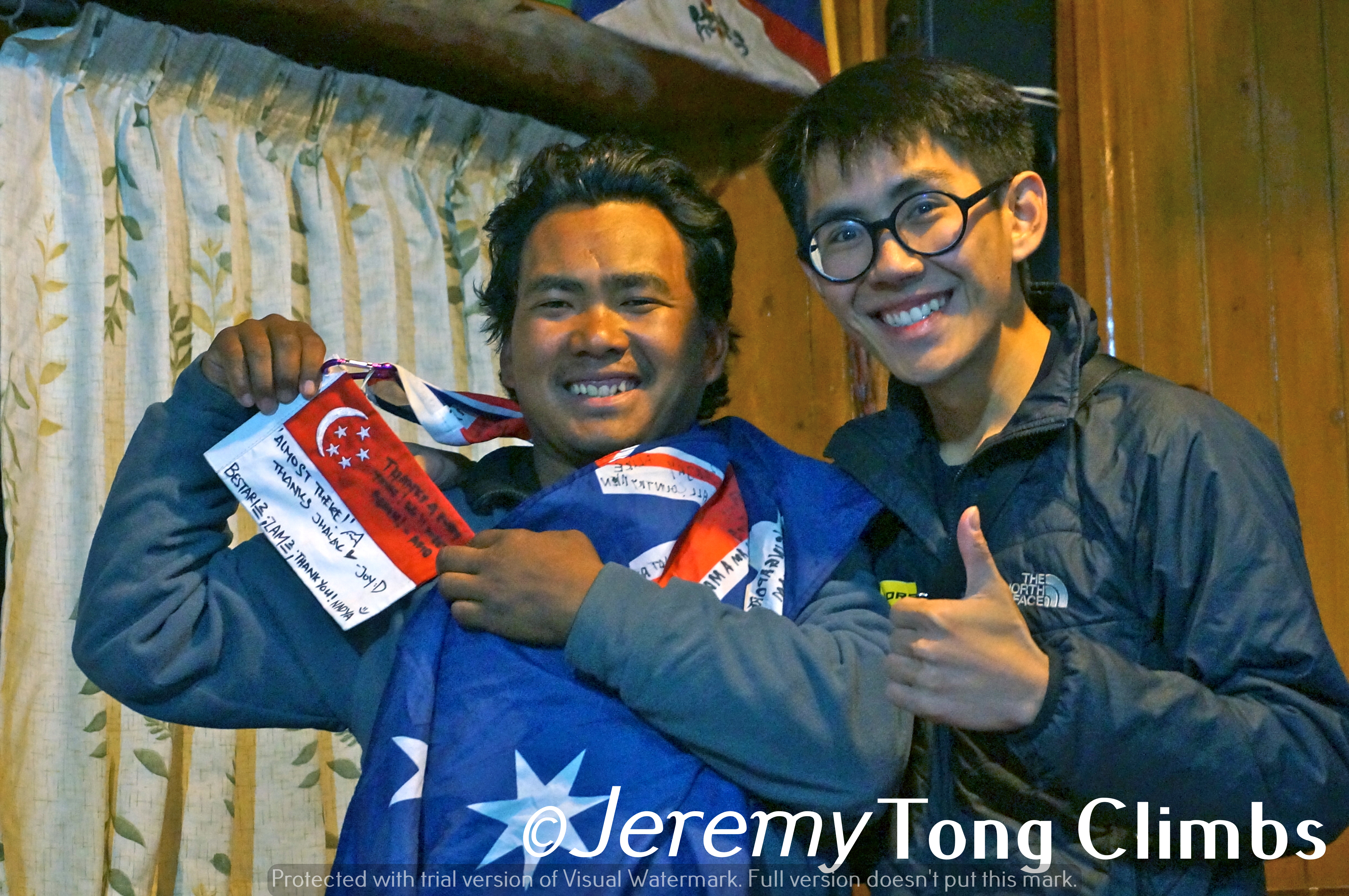 Jhalak my Nepal Liaison and me at the end of the trek. We presented this to him as part of his good efforts throughout the 17 days.